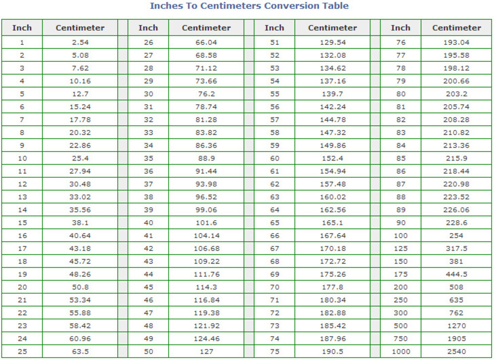 Dưới đây là bảng đổi inch sang cm hoặc từ cm sang inch giúp bạn dễ xác định hơn: