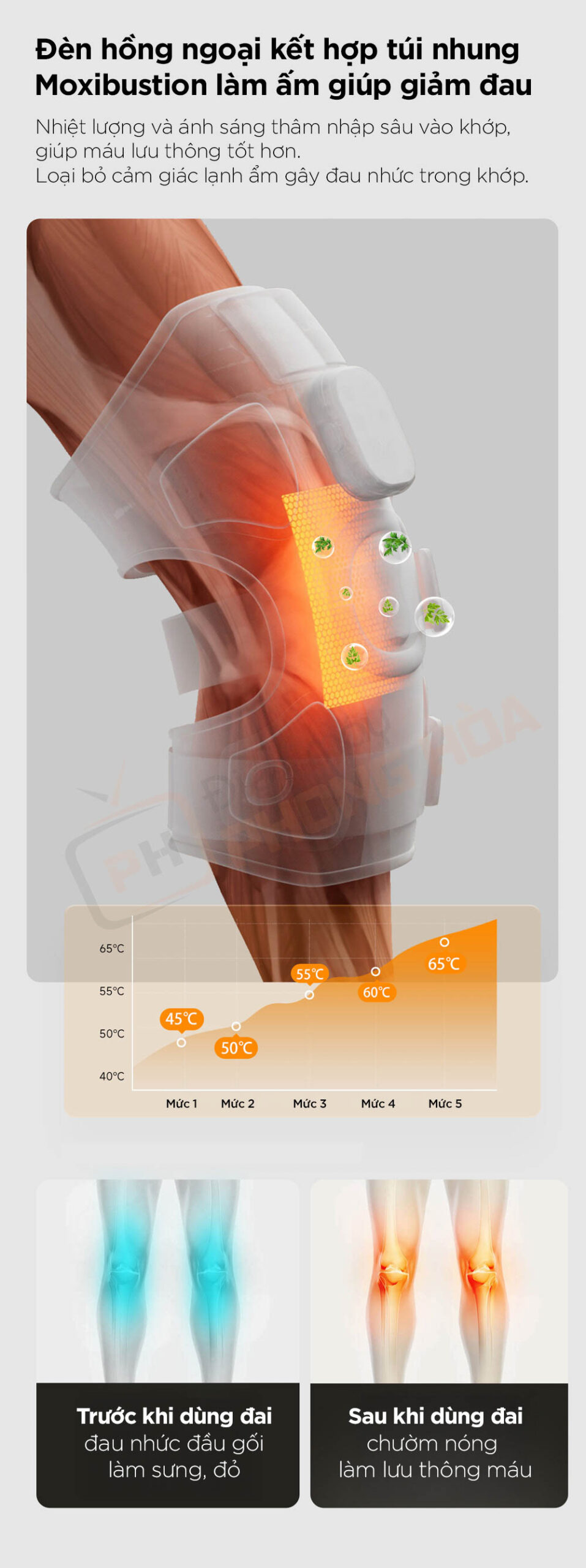Thiết kế linh hoạt có thể sử dụng đồng thời cho cả hai đầu gối, vai và khuỷu tay