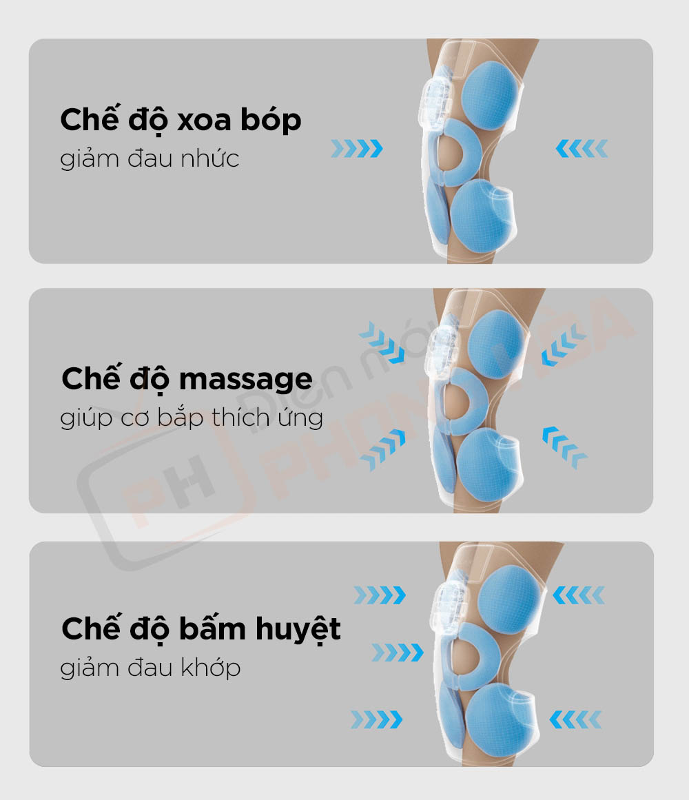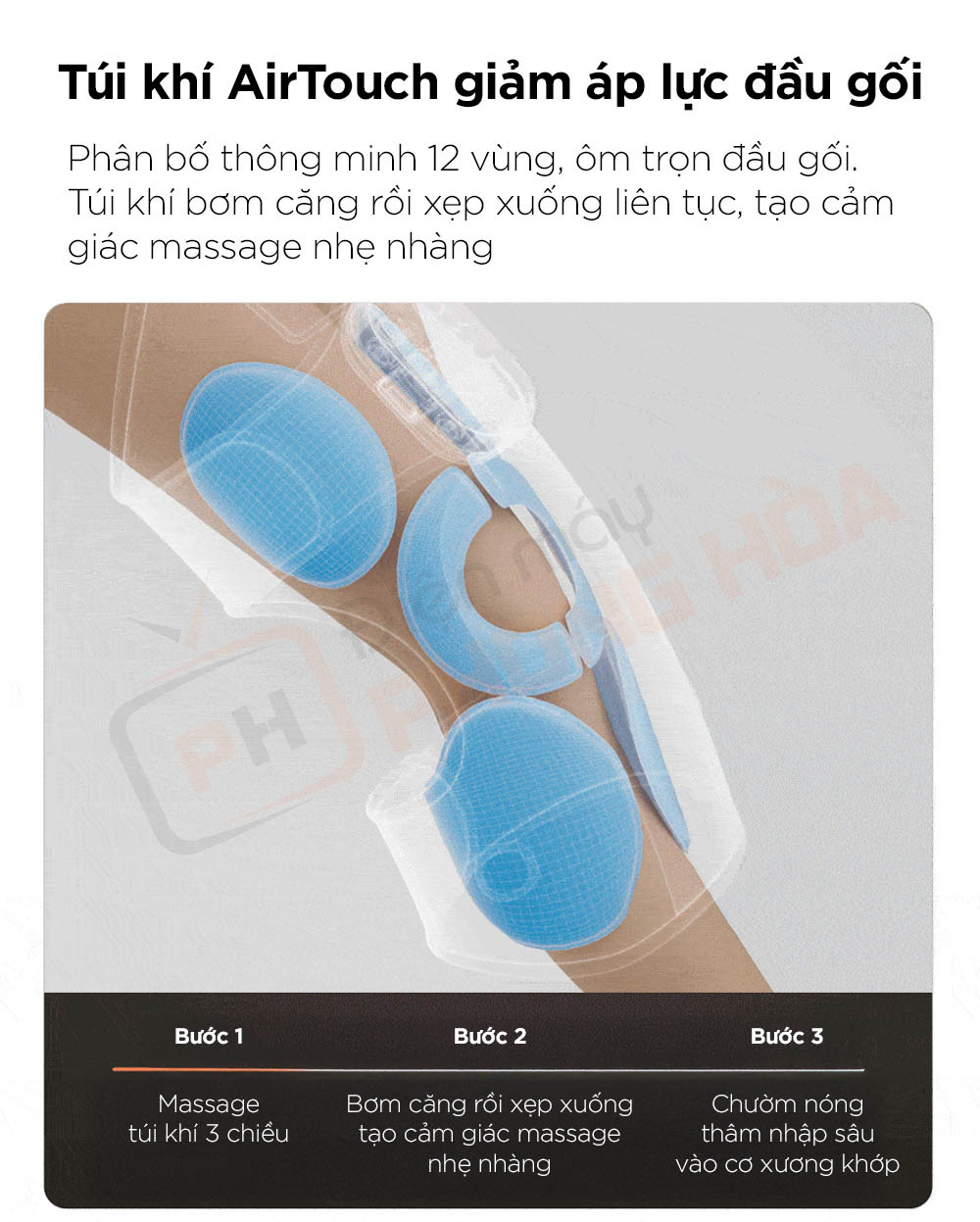 Túi khí AirTouch 3D massage nhẹ nhàng, giúp thư giãn hiệu quả vùng đầu gối