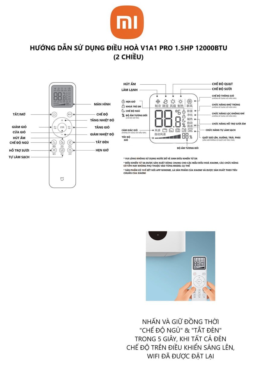 Hướng dẫn sử dụng điều khiển điều hòa Xiaomi