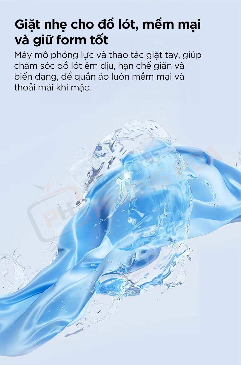 - Chế độ giặt nhẹ cho đồ lót mô phỏng thao tác giặt tay, giúp quần áo mềm mại và giữ form lâu hơn.
