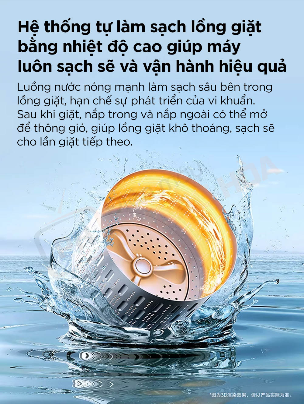 - Hệ thống tự làm sạch lồng giặt bằng nhiệt độ cao giúp giữ lồng giặt luôn sạch từ bên trong.