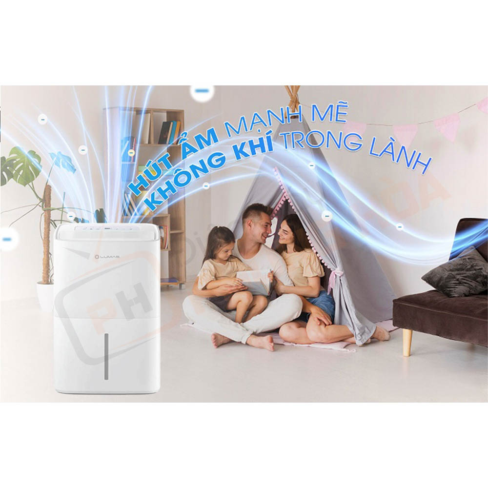 - Khả năng hút ẩm lên đến 60 lít/ngày, nhanh chóng đưa độ ẩm về mức lý tưởng cho không gian rộng tới 160m².