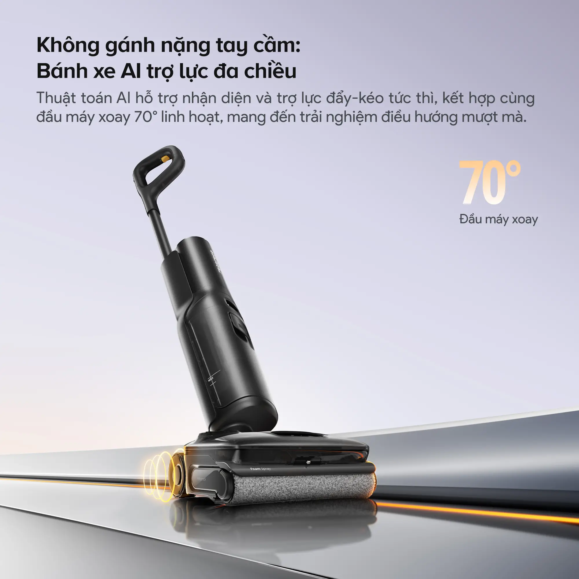 - Công nghệ phun bọt giúp làm mềm vết bẩn cứng đầu, tăng hiệu quả làm sạch sâu trên bề mặt sàn.