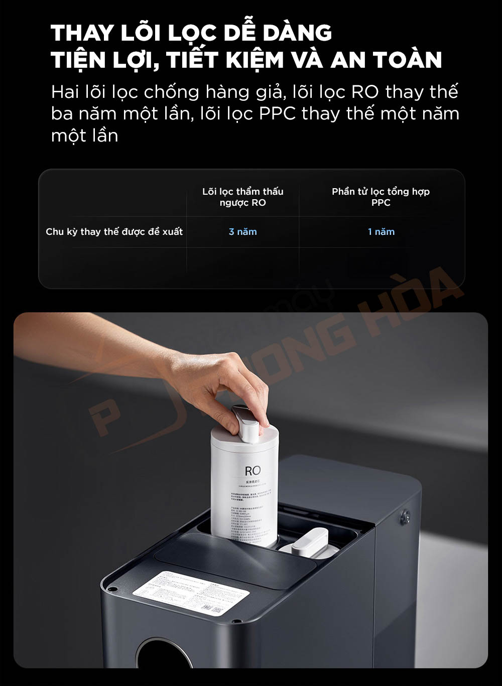 - Lõi lọc RO bền bỉ lên đến 3 năm, giúp tiết kiệm chi phí thay lõi và bảo trì định kỳ.