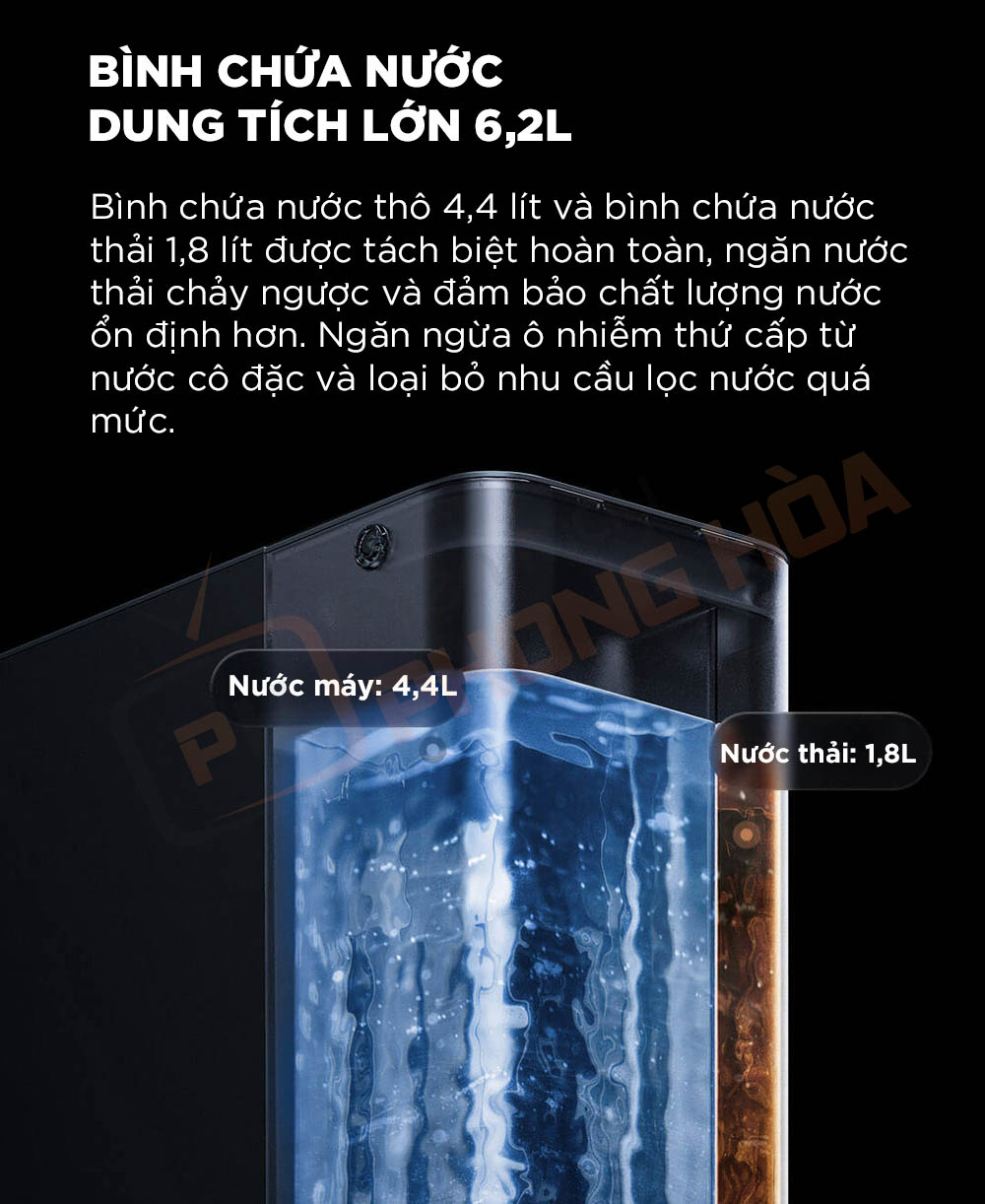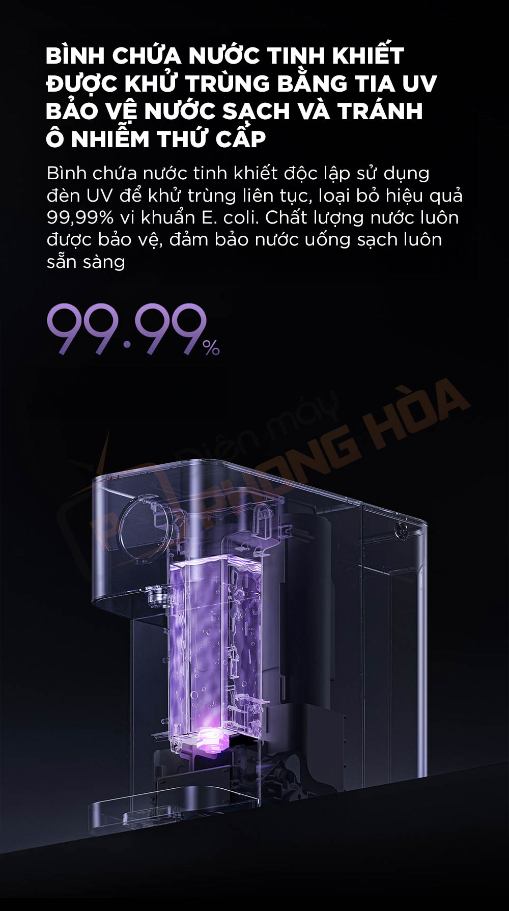 - Bình chứa nước khử trùng bằng tia UV, ngăn ngừa ô nhiễm thứ cấp, duy trì độ tinh khiết của nước trong thời gian dài.
