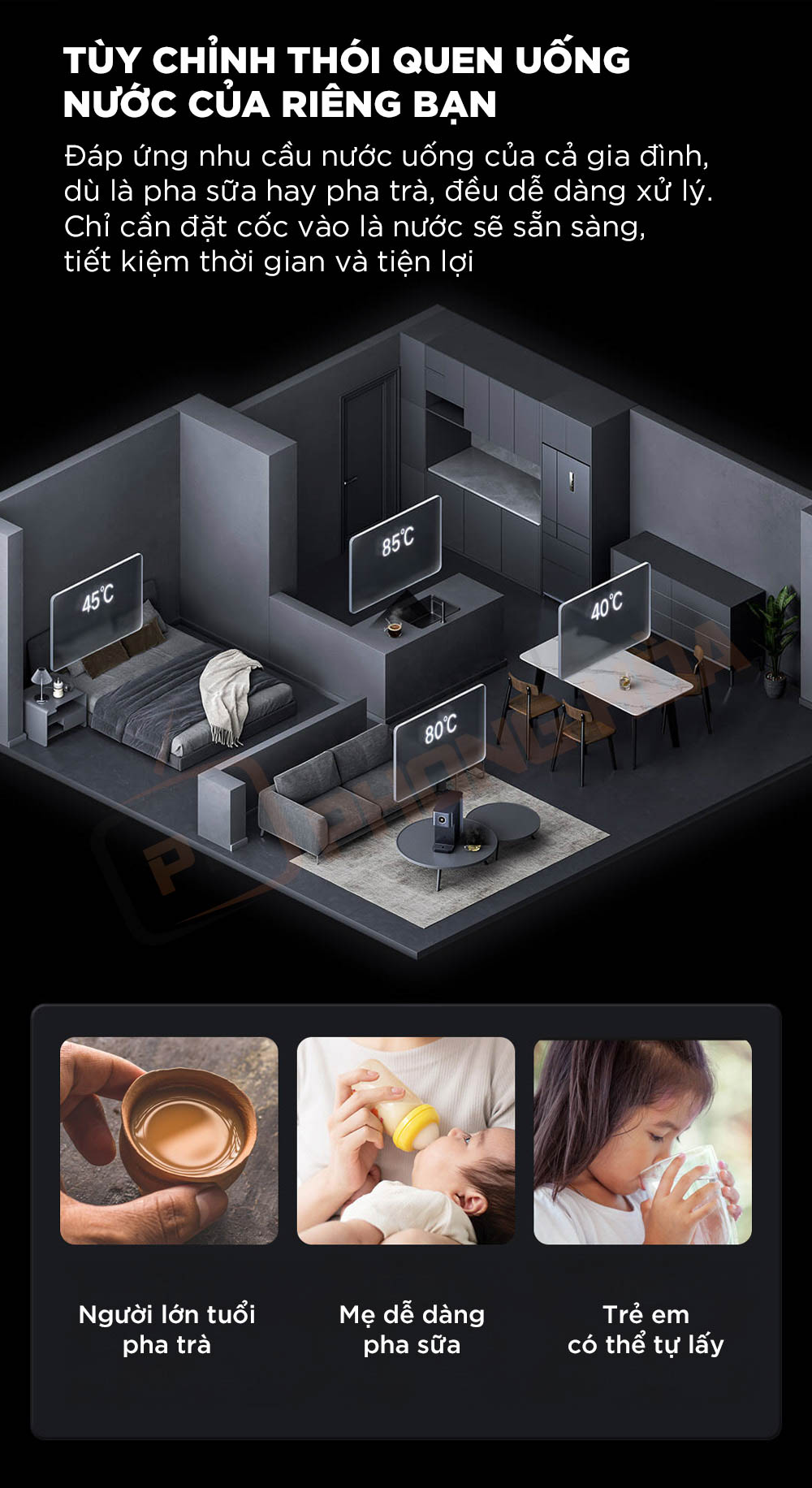- Bộ nhớ nhiệt độ & thể tích nước thông minh, cá nhân hóa thói quen uống nước cho từng thành viên trong gia đình.