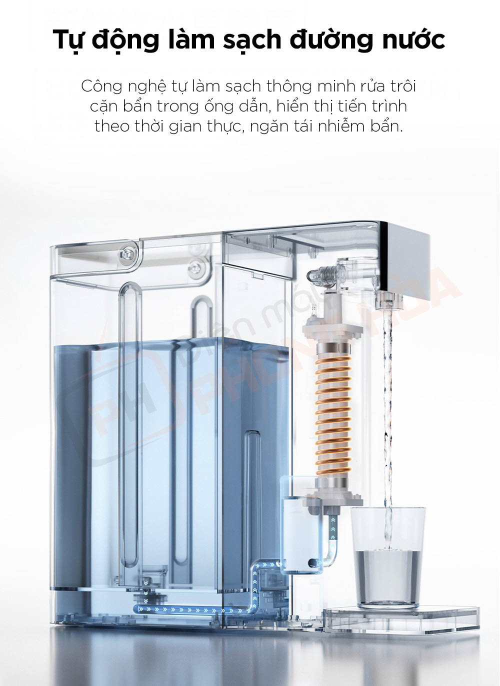 - Công nghệ tự làm sạch đường nước giúp rửa trôi cặn bẩn và hiển thị tiến trình theo thời gian thực.