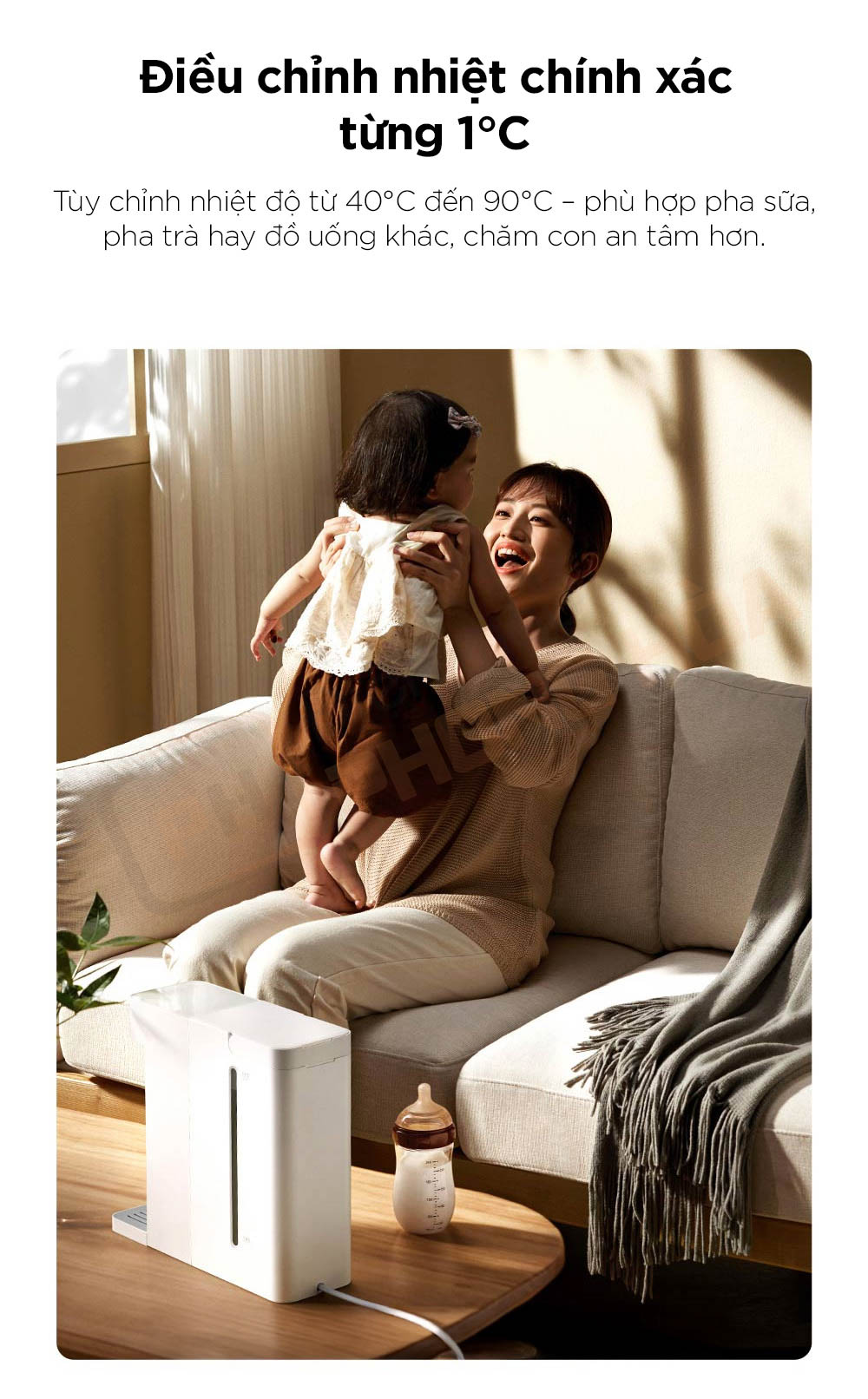- Điều chỉnh nhiệt độ linh hoạt từ 40–90°C, tùy chỉnh từng 1°C phù hợp pha trà, pha sữa.
