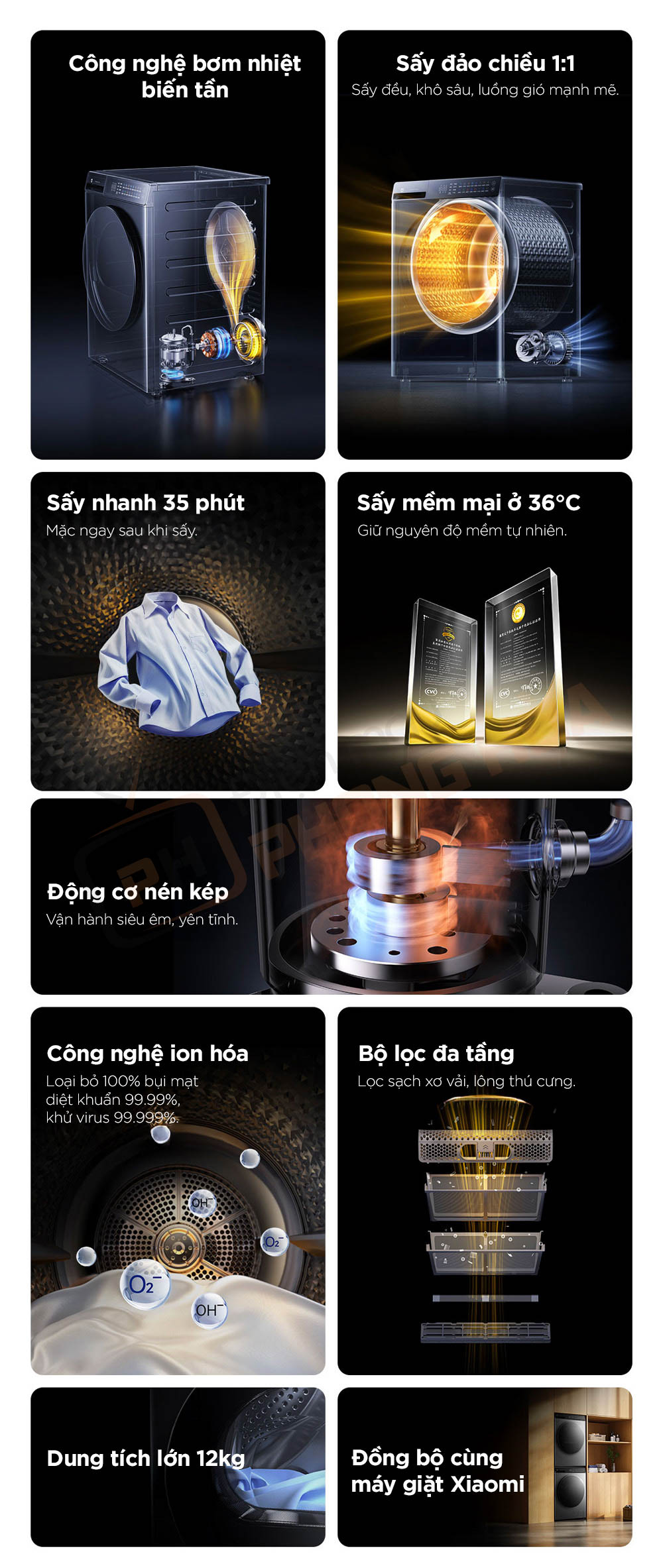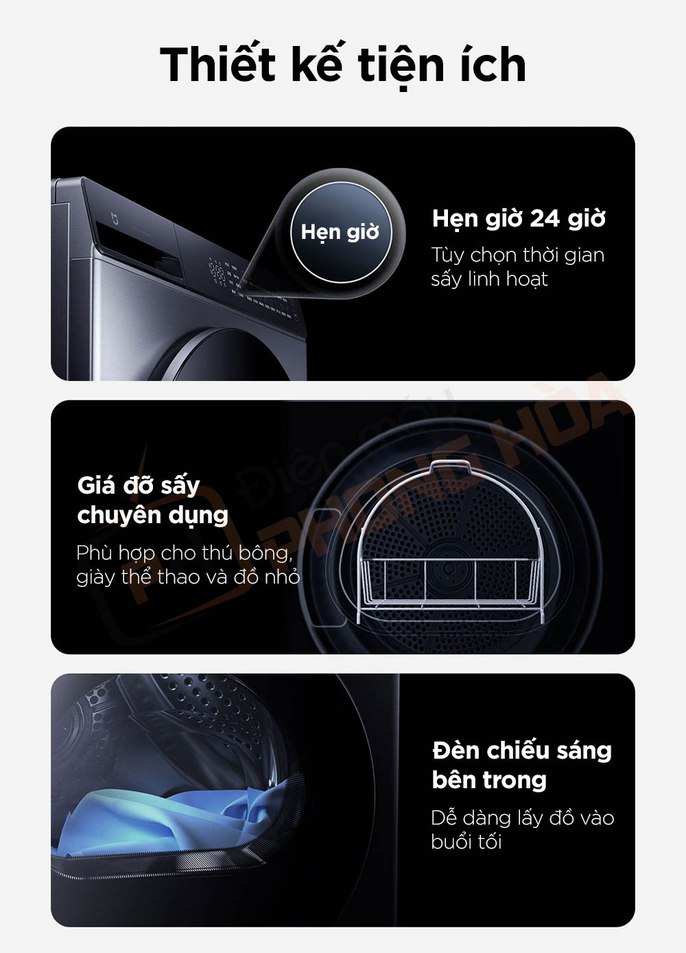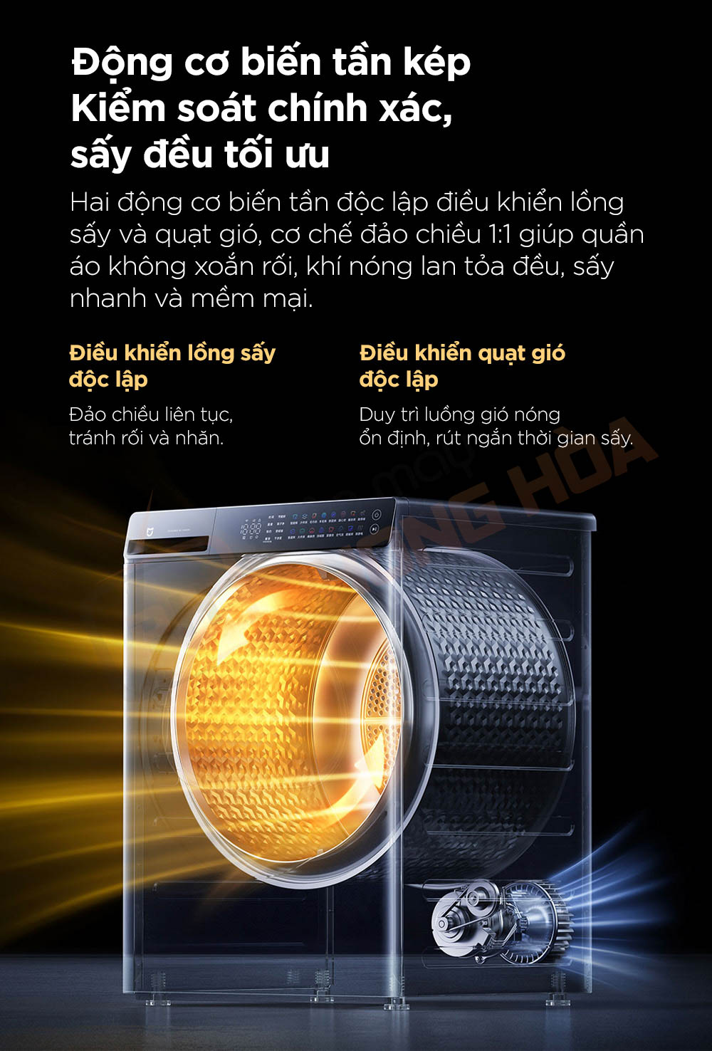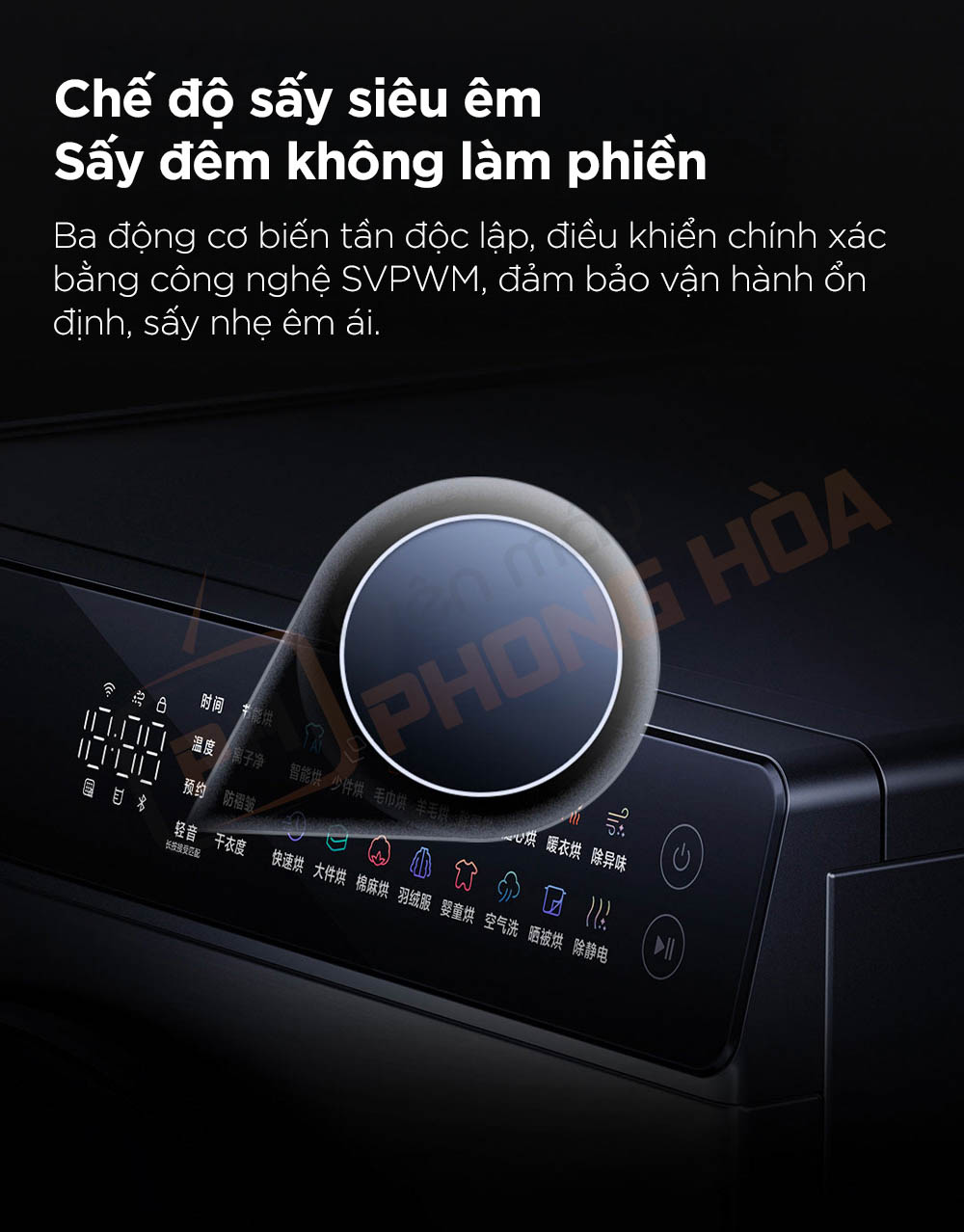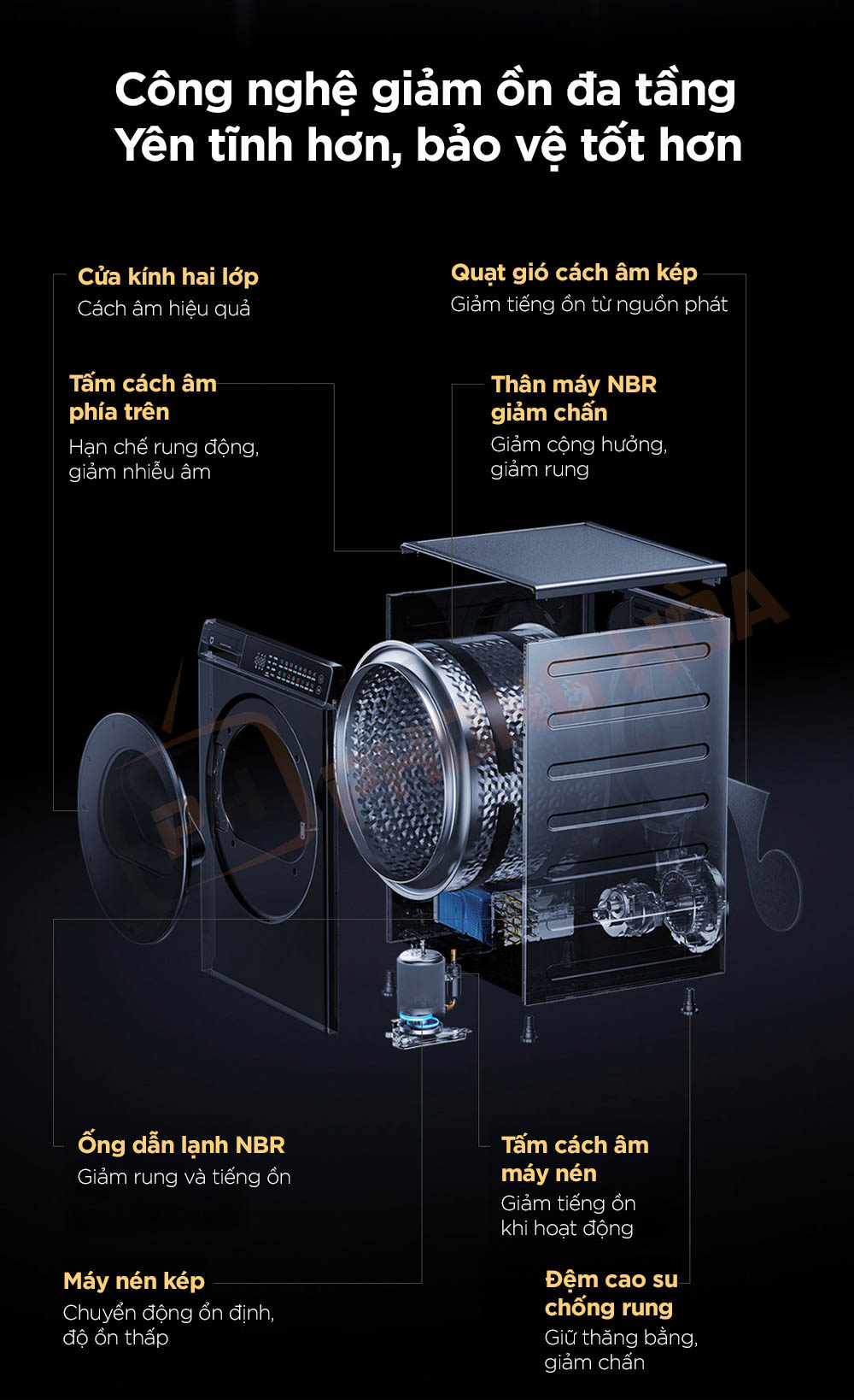 - Công nghệ giảm ồn đa tầng – Vận hành cực êm, phù hợp cả khi sấy ban đêm.