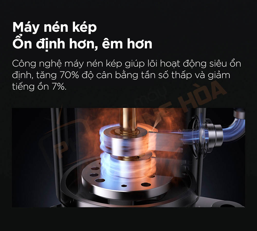 - Động cơ nén kép mạnh mẽ – Hoạt động ổn định, vận hành êm ái và giảm tiếng ồn hiệu quả.