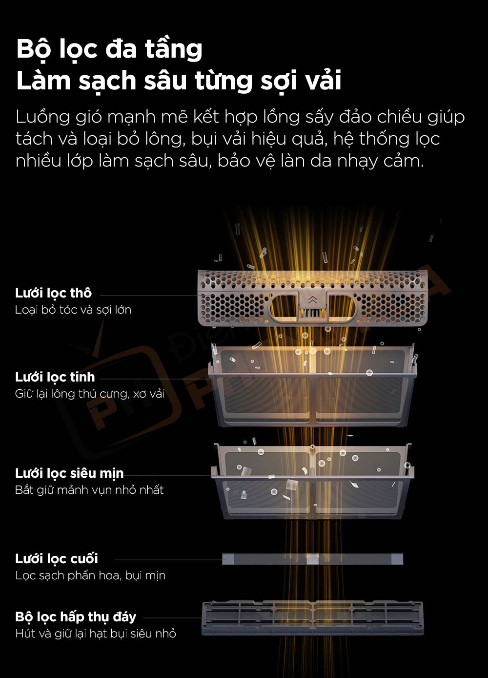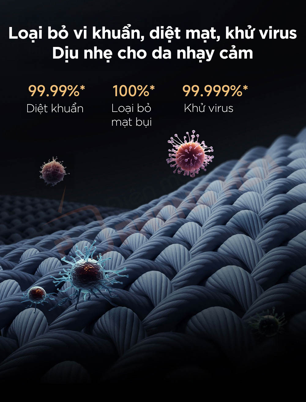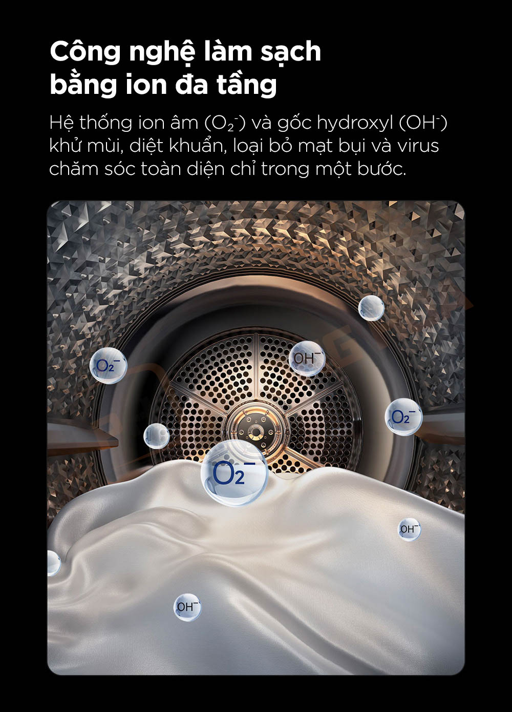 - Công nghệ ion hóa đa tầng – Loại bỏ bụi mạt, diệt khuẩn và khử virus tới 99.999%.