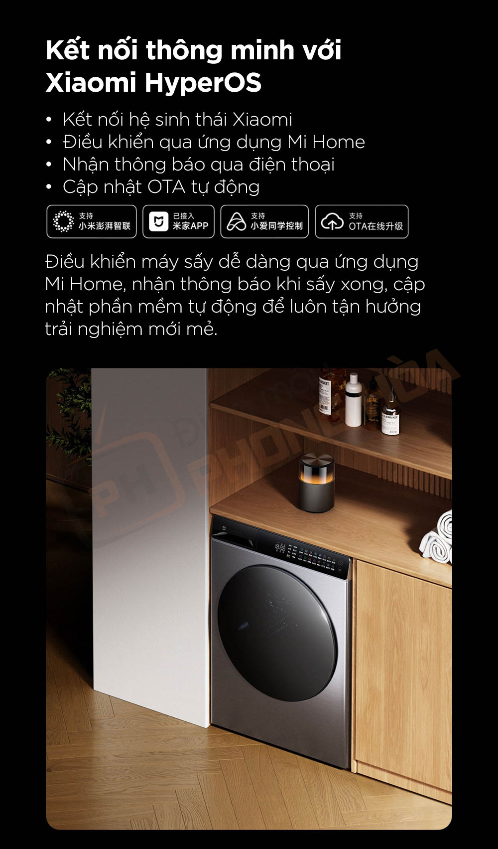 - Điều khiển thông minh qua ứng dụng Mi Home – Dễ dàng hẹn giờ, theo dõi và nhận thông báo sấy xong.