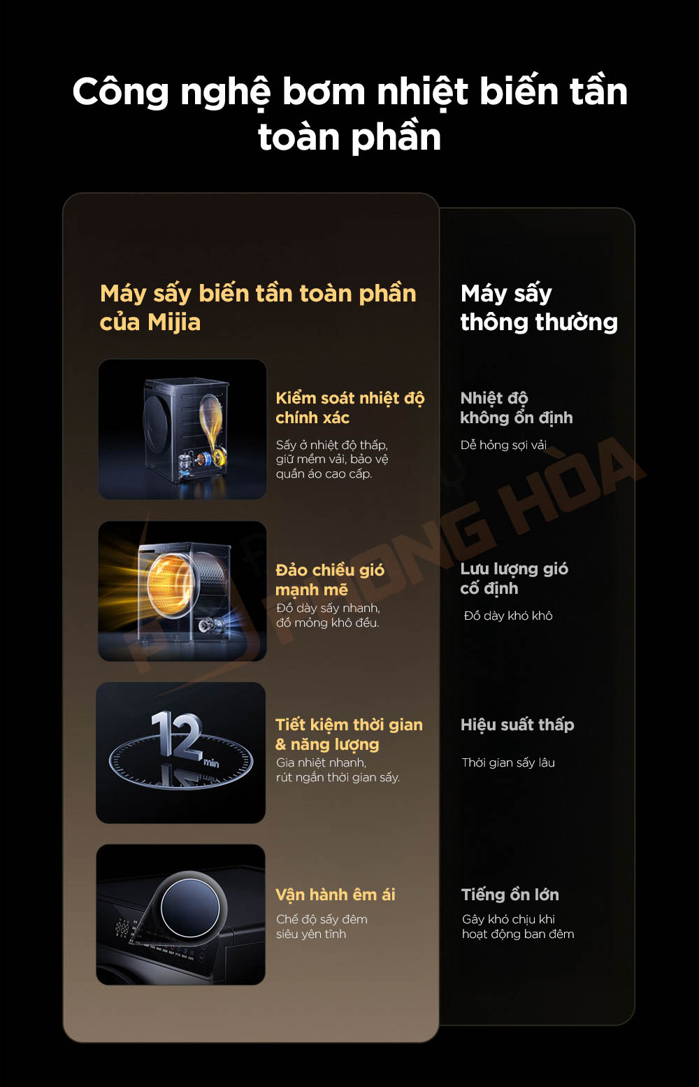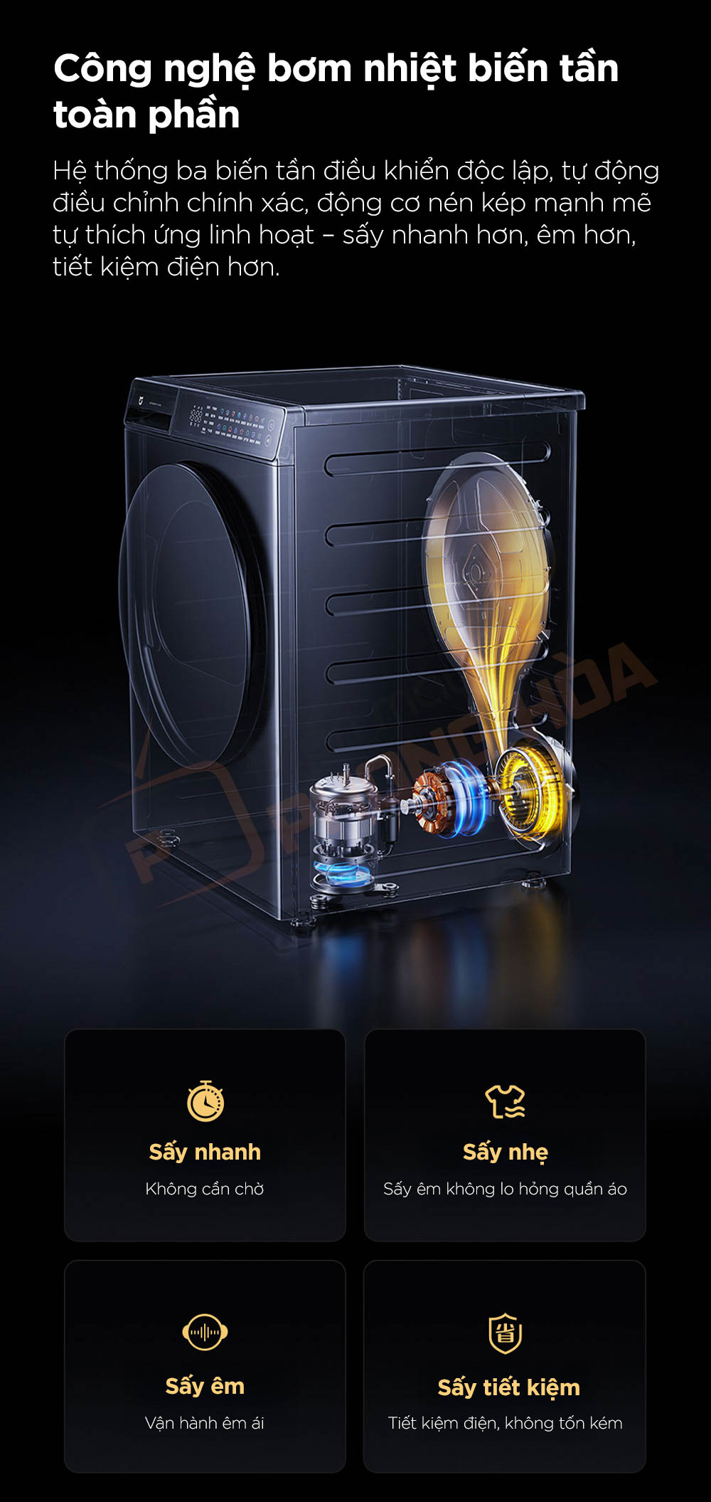 - Công nghệ bơm nhiệt biến tần toàn phần – Sấy nhanh, khô sâu và tiết kiệm năng lượng vượt trội.