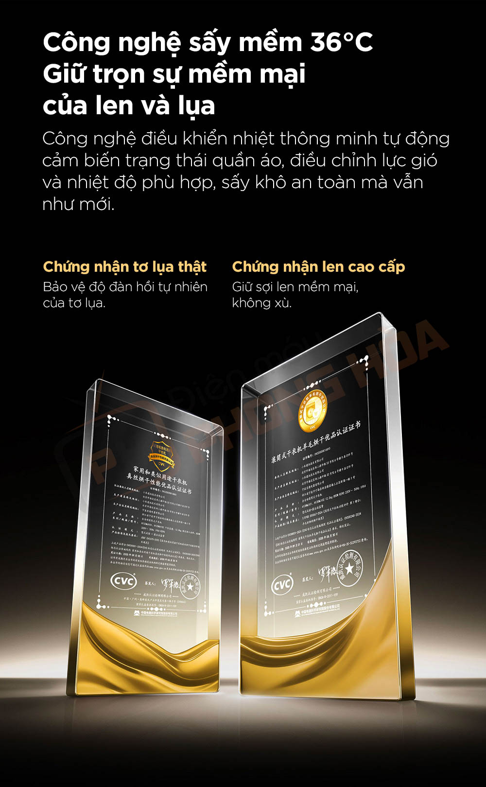 - Sấy mềm ở 36°C – Giữ nguyên độ mềm mịn, an toàn cho len, lụa và quần áo cao cấp.