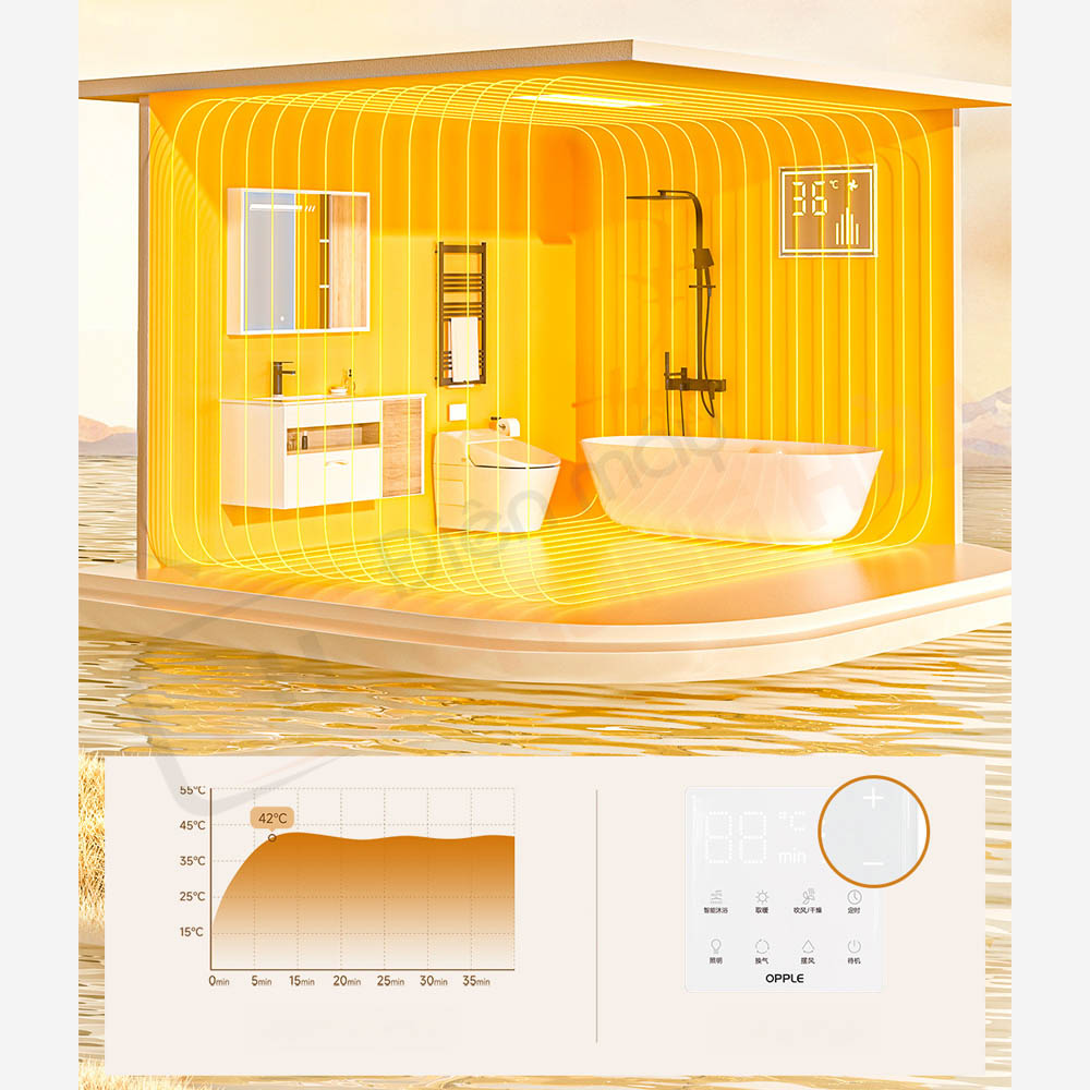 Máy sưởi phòng tắm OPPLE mang đến trải nghiệm tắm thông minh, làm ấm nhanh chóng và duy trì nhiệt độ ổn định, tạo cảm giác dễ chịu như điều hòa. Nhiệt độ có thể tùy chỉnh từ 32–42°C, giúp bạn tận hưởng phút giây thư giãn trọn vẹn.