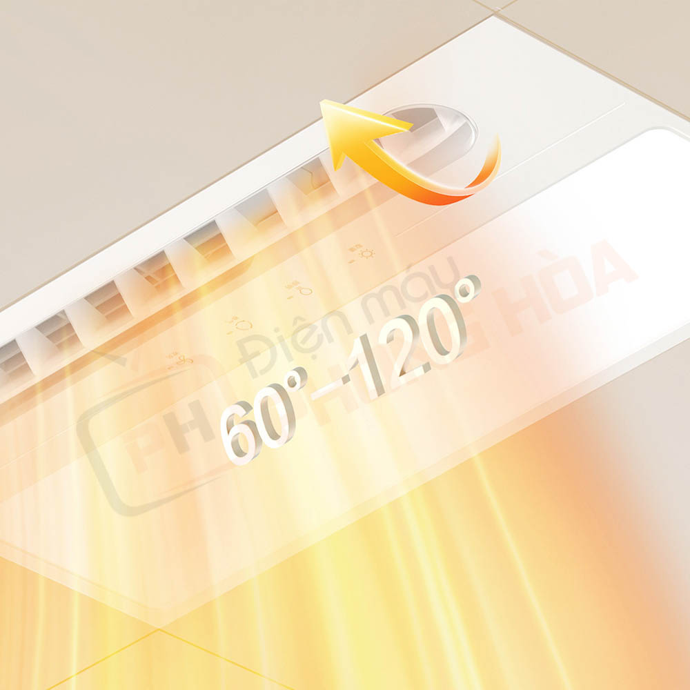 • Chế độ gió dao động góc rộng 60°–120° cho khả năng tản nhiệt nhanh, bao phủ toàn bộ không gian phòng tắm.