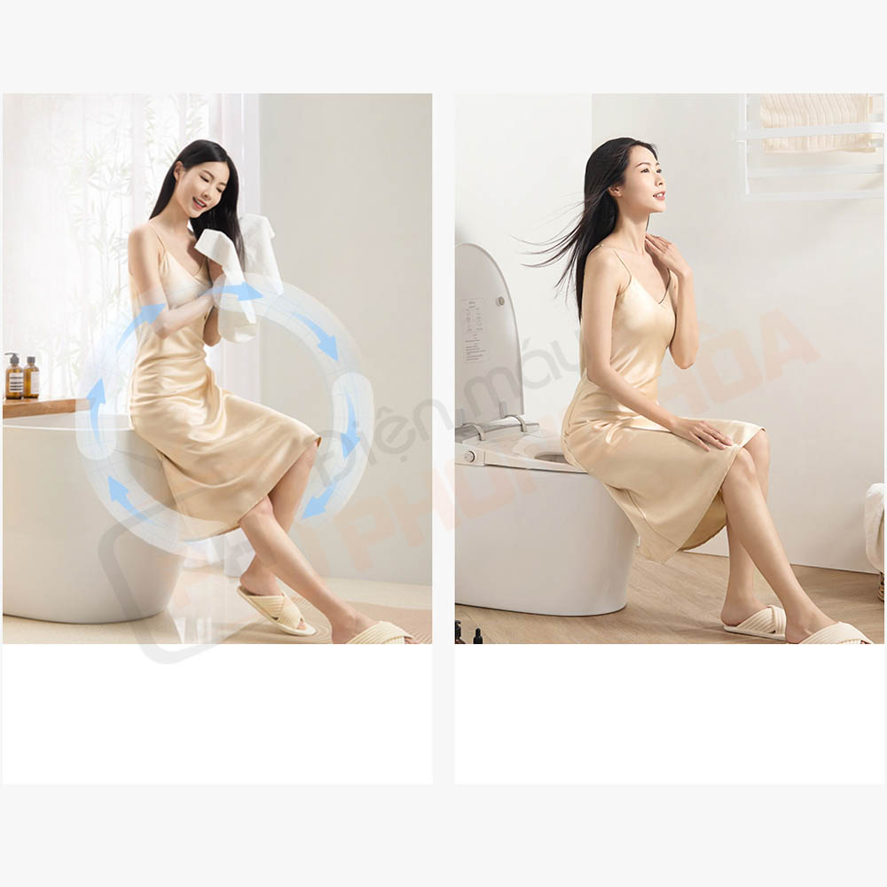 Chỉ với một nút bấm, chức năng sấy khô và khử ẩm sẽ loại bỏ hơi nước, giữ cho phòng tắm khô ráo và hạn chế sự sinh sôi của vi khuẩn. Hệ thống sưởi thông minh vận hành theo chu trình 25 phút sưởi ấm, 25 giây làm mát, 5 phút thông gió, lặp lại 4 lần và tự động tắt, giúp duy trì độ khô và thông thoáng tối ưu.
