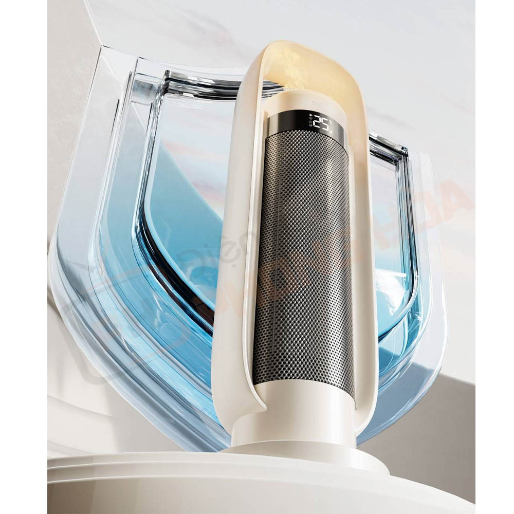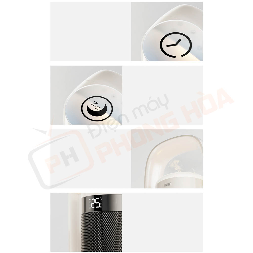 Bên cạnh đó, thiết kế thân máy dày hơn giúp ổn định cấu trúc, đồng thời tối ưu đường dẫn khí để vừa cung cấp luồng gió mạnh mẽ, vừa giảm thiểu tiếng ồn. Động cơ DC im lặng cùng cơ chế loại bỏ tiếng ồn trong ống dẫn khí giúp sản phẩm êm ái vượt trội so với các dòng máy sưởi thông thường. Nhờ đó, máy không chỉ sưởi ấm và tạo ẩm hiệu quả, mà còn duy trì không gian tĩnh lặng tuyệt đối, lý tưởng cho phòng ngủ hay văn phòng làm việc.