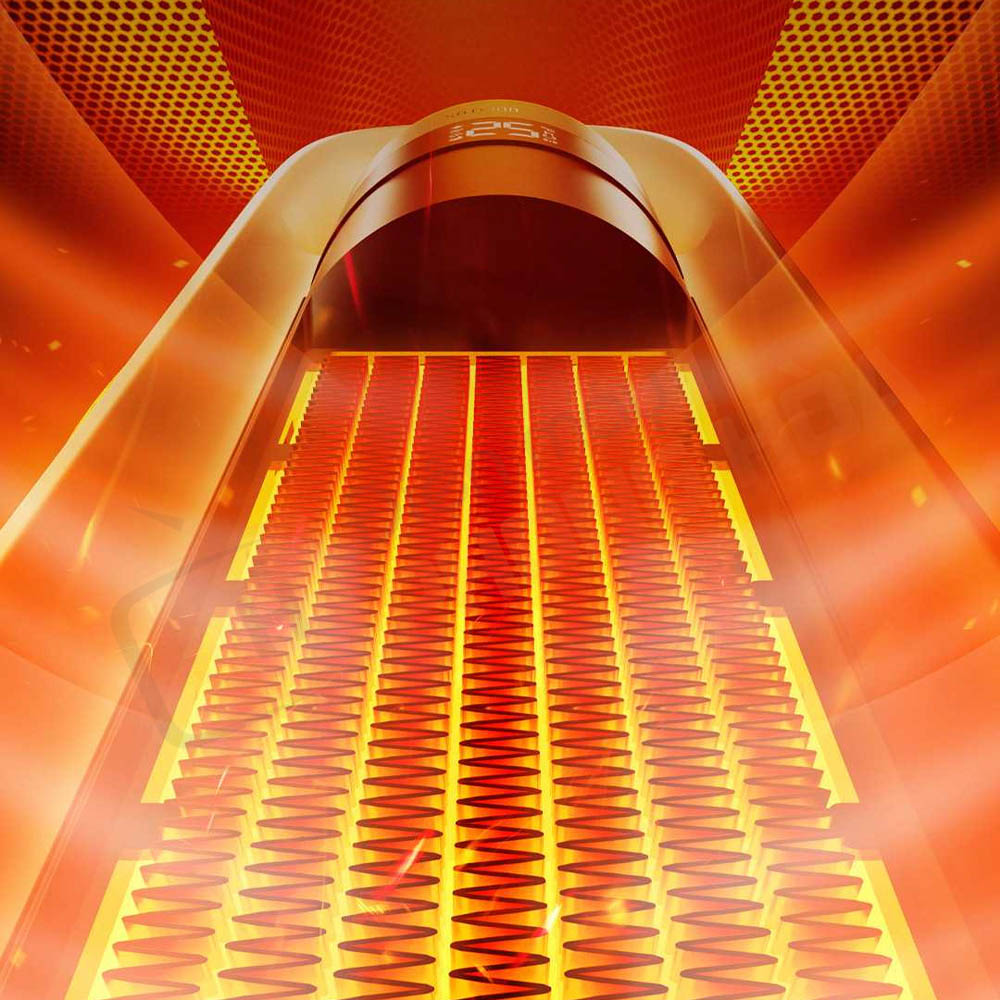 Thiết kế lõi kép cùng luồng khí mạnh mẽ giúp hơi ấm lan tỏa đều, bao trùm cơ thể từ đầu đến chân, tạo cảm giác dễ chịu ngay cả trong những ngày đông giá rét. So với các dòng máy sưởi thông thường vốn chỉ sử dụng quạt đơn và nguồn cấp khí tốc độ thấp, mẫu máy sưởi này nổi bật hơn nhờ tích hợp hệ thống cánh quạt đôi hoạt động tốc độ cao.