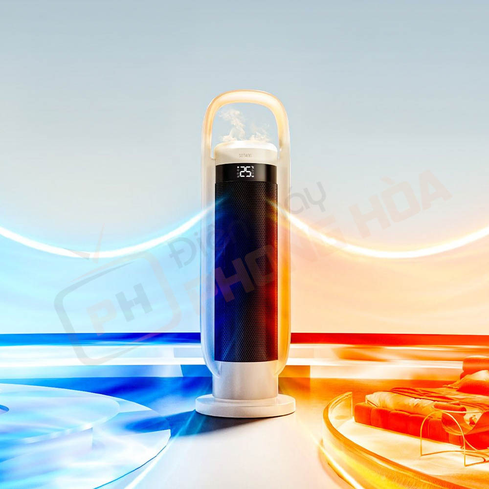 Máy sưởi tháp tạo ẩm Sothing không chỉ đơn thuần là một thiết bị sưởi ấm, mà còn tích hợp hệ thống kép vừa làm nóng, vừa làm mát, đáp ứng nhu cầu sử dụng quanh năm. Vào mùa đông, bạn có thể tận hưởng luồng khí ấm áp dễ chịu, giúp xua tan cảm giác lạnh giá và ẩm ướt. Ngược lại, vào mùa hè, thiết bị hoạt động như một chiếc quạt làm mát, mang đến bầu không khí mát mẻ và thoải mái, hỗ trợ song song cùng máy lạnh để tăng hiệu quả làm mát.