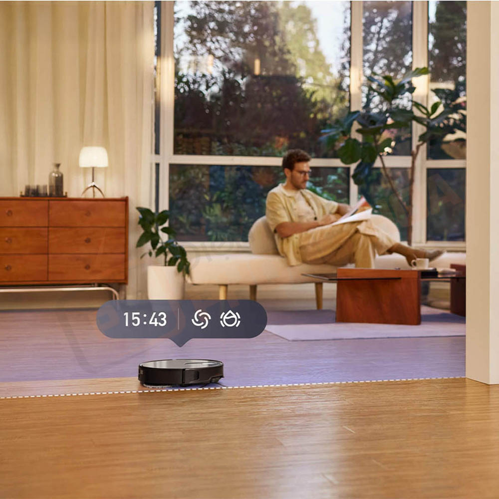 Nhờ khả năng hoạt động êm ái này, robot có thể dọn dẹp bất kỳ thời điểm nào trong ngày, kể cả ban đêm, mà không làm gián đoạn không gian yên tĩnh của bạn.