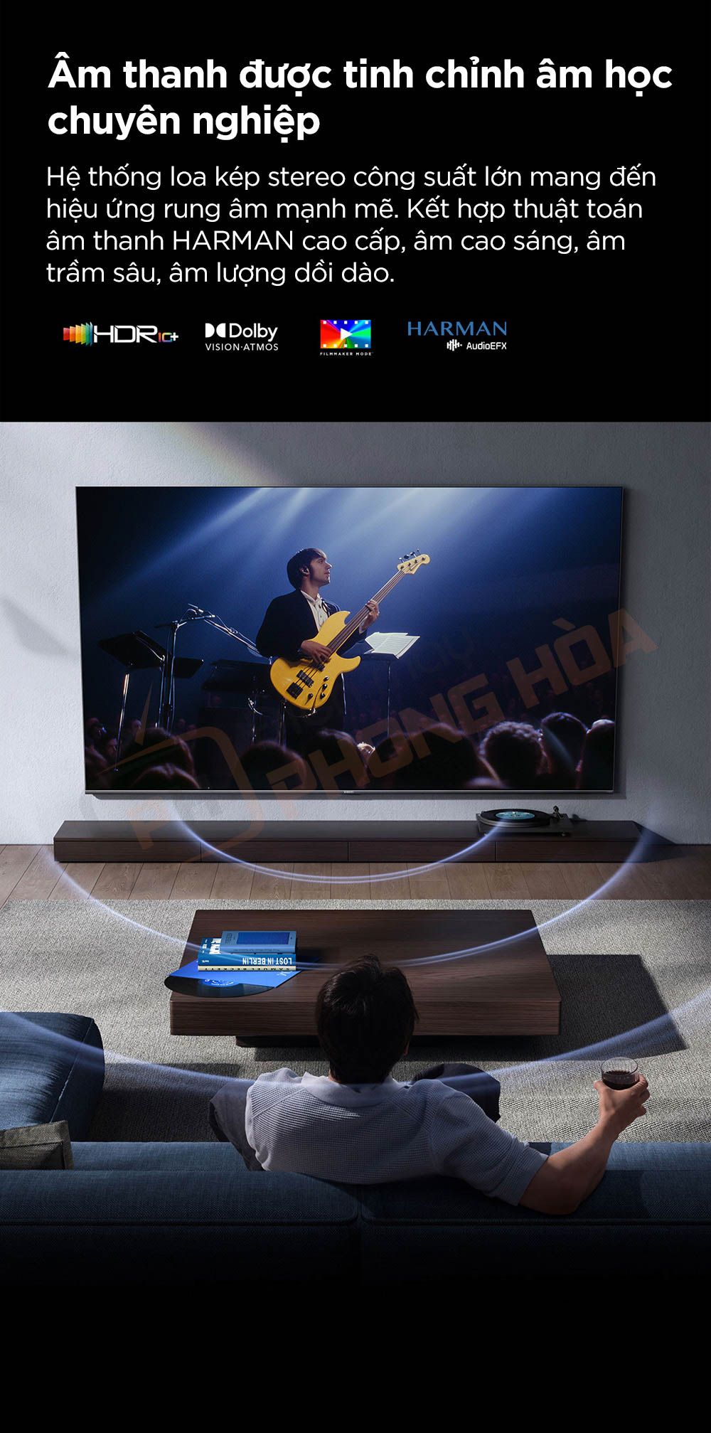 - Âm thanh tinh chỉnh bởi Harman AudioEFX, hỗ trợ Dolby Vision Atmos.