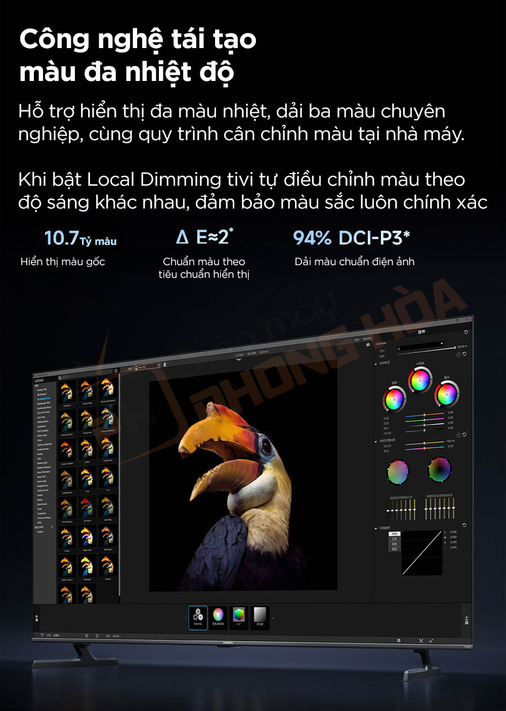 - Tái tạo màu đa nhiệt độ với 10.7 tỷ màu, ΔE ≈ 2°, đạt 94% DCI-P3.