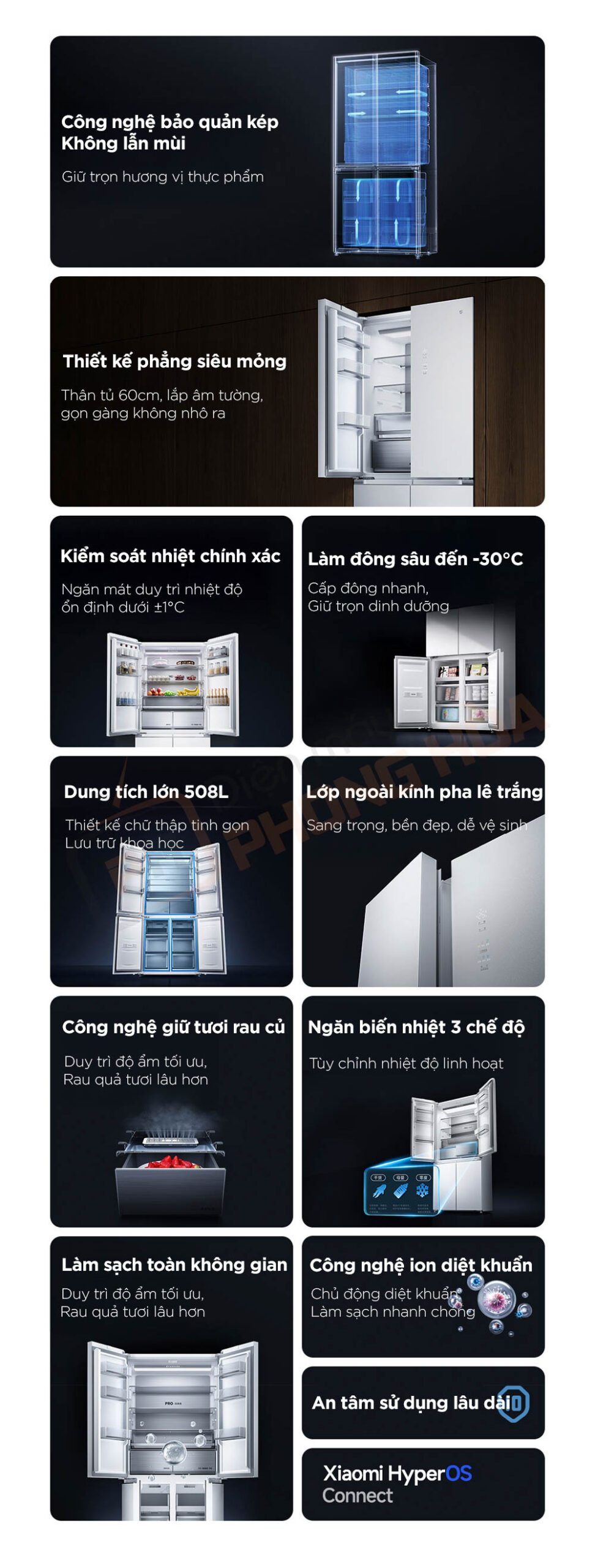 Các tính năng nổi bật của Tủ lạnh 4 cánh Xiaomi Mijia 508L Pro