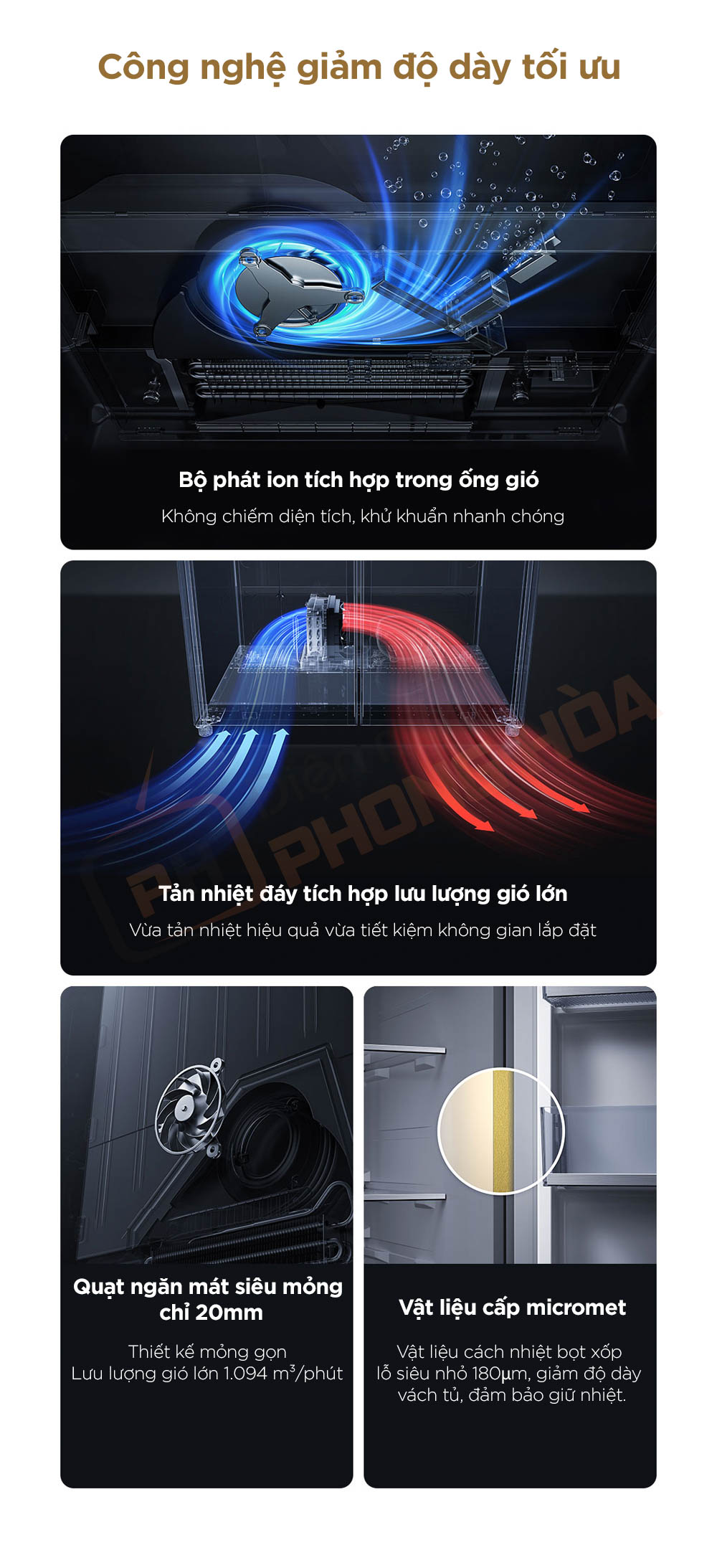 - Thân tủ siêu mỏng 60cm, lắp âm phẳng tủ bếp, không nhô ra, tối ưu không gian.
